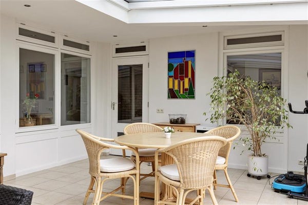 De zonnige en privacyvolle tuin is gelegen op het zuidoosten, wat betekent dat je hier de hele dag kunt genieten van de zon. Of je nu in de ochtend een kop koffie wilt drinken of in de avond met vrienden wilt dineren in de buitenlucht, deze tuin heeft genoeg ruimte voor allerlei activiteiten. De serre vormt een mooie overgang van binnen naar buiten.