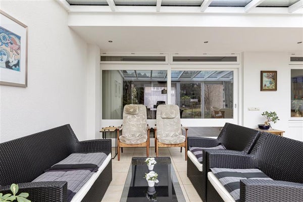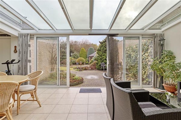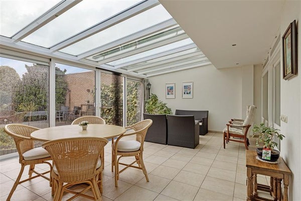 Ruime serre met vloerverwarming: een lichte extra ruimte aan de woonkamer waar je alle seizoenen kunt genieten van het uitzicht op de tuin.