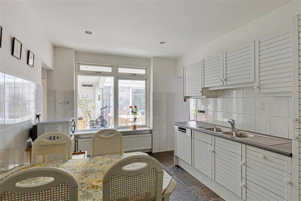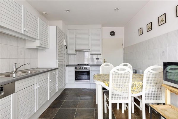 De leefkeuken is dé plek waar samenkomen centraal staat. Hier is voldoende ruimte voor een grote eettafel, zodat je uitgebreid kunt dineren met familie of vrienden. De keuken is van alle gemakken voorzien, zoals een gaskookplaat, oven, koelkast, vriezer en vaatwasser. Of je nu een snelle maaltijd wilt bereiden of uitgebreid wilt koken, hier kan het allemaal.