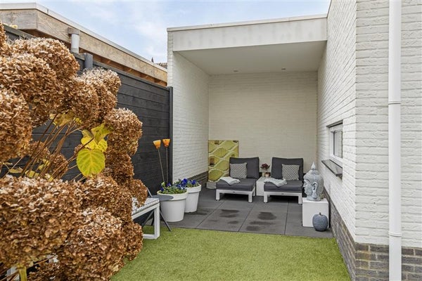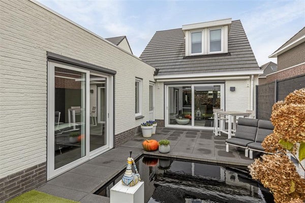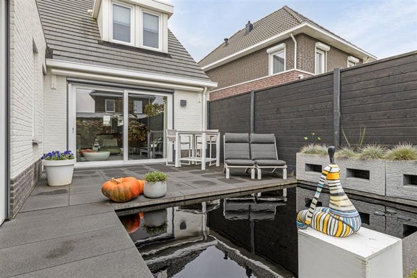 Buiten wachten de zonnestralen op je in de onderhoudsvriendelijke tuin. De vijverpartij voegt een vleugje sereniteit toe, terwijl de overkapping je een beschutte plek biedt om van de buitenlucht te genieten, ongeacht het weer.