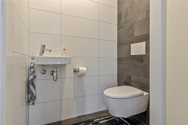 Stel je voor: je opent de deur naar je nieuwe thuis en wordt meteen begroet door een warme en uitnodigende sfeer. De woonkamer is een zee van ruimte en licht, mede dankzij de grote schuifpui die het zonlicht naar binnen laat en je een fijn uitzicht biedt op de tuin.