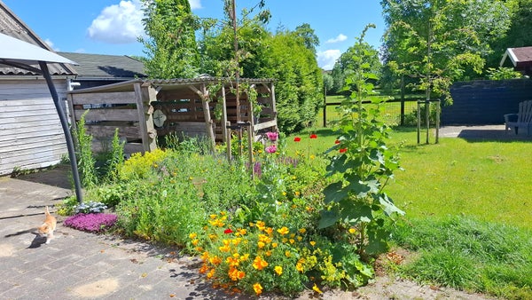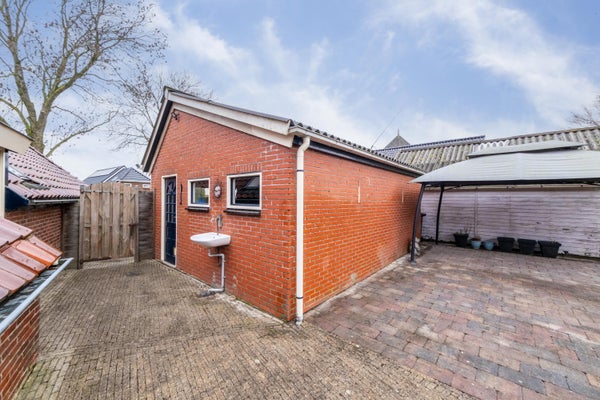 Dit sfeervolle woonboerderijtje, dat dateert uit 1905, beschikt over een garage en een ruime tuin van 575 m². Bij binnenkomst via de zijdeur komt u in de gang, die toegang biedt tot de woonkeuken, de slaapkamer, de badkamer, het toilet en de bijkeuken. De woonkamer, gelegen in het voorhuis, heeft een oppervlakte van circa 23 m² en is voorzien van oude elementen zoals een schouw met houtkachel. De woonkeuken van circa 20 m² heeft een L-opstelling en is uitgerust met een gasfornuis, afzuigkap en koelkast. De begane grond bevat ook een slaapkamer van circa 12 m² en een badkamer met douchehoek en ligbad. De verdieping heeft een ruime slaapkamer van circa 18 m² en een klein kamertje. Verder is er een vrijstaande stenen garage van circa 30 m² met zolder en twee opritten.