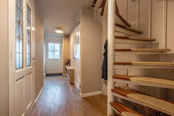 Aan de zijkant van de woning bevindt zich een schuur die het pad langs de woning verbindt met de tuin. Hierdoor is de tuin ook direct vanaf de straat bereikbaar, wat zorgt voor extra gemak en een vrij gevoel rondom de woning.