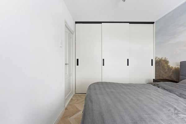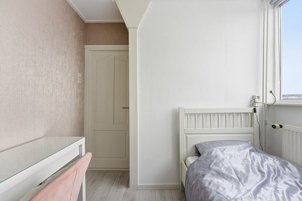 Slaapkamer 1: Slaapkamer één is gelegen aan de voorzijde van de woning en beschikt over een praktische inbouwkast. De ruimte is afgewerkt met een laminaatvloer, behang- en/of geschilderde wanden en een gipsplafond.