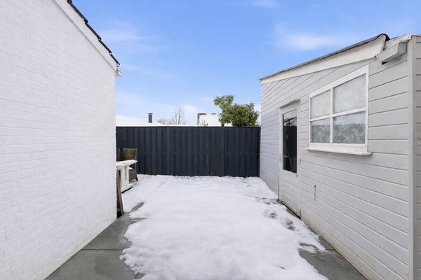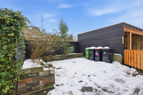 Achtertuin: De achtertuin is gelegen op het zonnige zuidwesten en heeft een knusse, speelse indeling met ruimte voor een gezellig zitje. Hier geniet je van veel privacy. De tuin heeft een afmeting van circa 8,1 x 5,4 meter en is bereikbaar via een achterom met poort. De tuin is afgewerkt met sierbestrating en beschikt over een houten schuur.