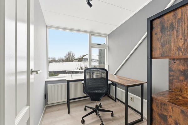 Slaapkamer 3: Slaapkamer drie ligt aan de achterzijde van de woning en is uitstekend geschikt als hobby-, kinder- of werkkamer. De ruimte is afgewerkt met een laminaatvloer, glasvliesbehang en een gipsplafond.