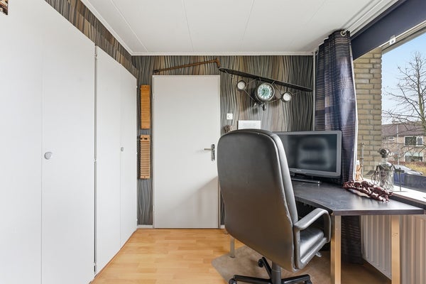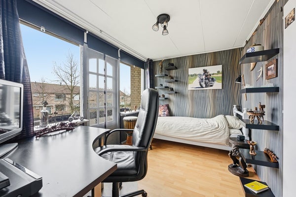 Slaapkamer 3: Ook deze slaapkamer bevindt zich aan de achterzijde en beschikt over een inbouwkast. De indeling biedt ruimte voor diverse gebruiksmogelijkheden. De kamer is afgewerkt met laminaat, behangwanden en een gipsplafond.