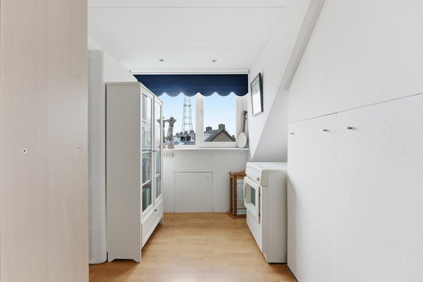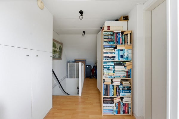 Overloop: De overloop op de tweede verdieping is voorzien van een dakkapel aan de achterzijde. Hier bevinden zich de Cv-ketel en de droger. De dakkapel is flink en heeft kunststof kozijnen. De ruimte is afgewerkt met laminaat, structuurwanden en een gipsplafond.