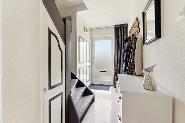 Entree: De entree biedt toegang tot de meterkast, een handige trapkast en een bergkast, de woonkamer, de keuken en de trapopgang naar de eerste verdieping. De ruimte is afgewerkt met plavuizen op de vloer, spachtelputz wanden en een gipsplafond.