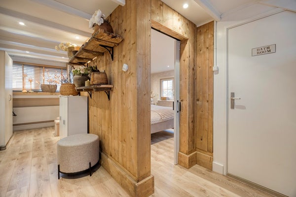 Via de nette hal betreedt u deze karaktervolle woning. De hal geeft toegang tot de voorkamer, de keuken en de trap naar de eerste verdieping. De fraaie glas-in-loodramen vallen direct op en geven bij binnenkomst al een prachtige eerste indruk van de authentieke details die deze woning zo bijzonder maken.