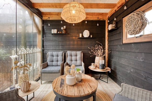 Vanuit de bijkeuken stapt u zo de zeer fraai aangelegde achtertuin in. De royale overkapping is een echte eyecatcher en maakt het mogelijk om het hele jaar door van buiten te genieten. Dankzij de harmonica glazenschuifdeuren kan de overkapping volledig worden afgesloten, waardoor u hier een heerlijke extra leefruimte creëert. Naast de overkapping is een grote berging gesitueerd.