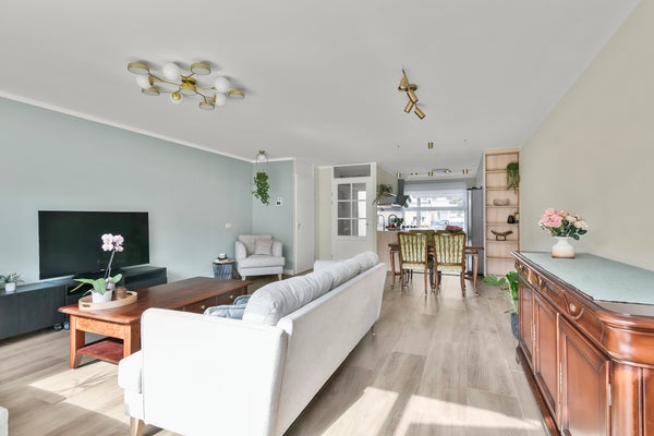 • De tussenwoning heeft een woonoppervlakte van 124 m² en beschikt over 6 kamers, waarvan 5 slaapkamers;