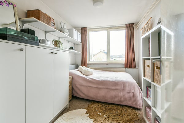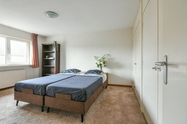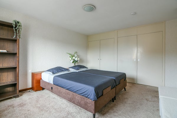 De hoofdslaapkamer beschikt over praktische vaste kastruimte, terwijl de achter slaapkamer is voorzien van een royale schuifwandkast. De badkamer is modern uitgevoerd met een dubbele wastafel in meubel, douchecabine en wandcloset.