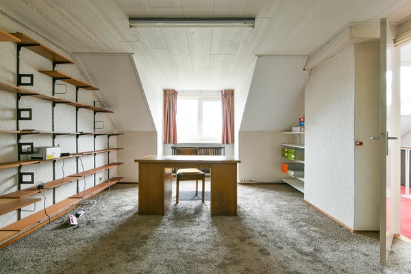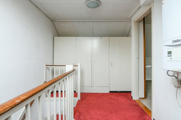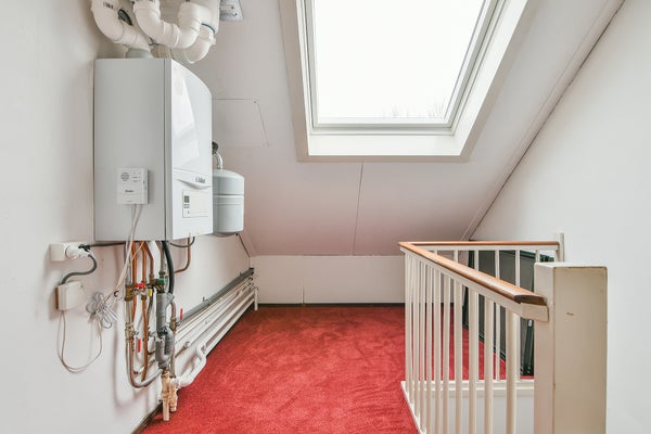 Overloop met dakraam, veel bergruimte, de opstelling van de cv-ketel (2018) en een ruime zolderslaapkamer met dakkapel. Een fijne extra verdieping die zich uitstekend leent als vierde slaapkamer, werkkamer of hobbyruimte.