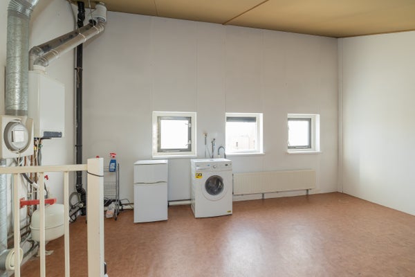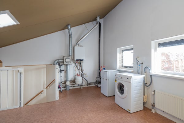 Ruime verdieping met opstelplaats voor de combiketel, mechanische ventilatie en wasmachineaansluiting. Deze verdieping biedt uitstekende mogelijkheden om een volwaardige extra slaapkamer, werkruimte of hobbykamer te realiseren. Het plaatsen van een dakkapel zou extra ruimte en licht kunnen toevoegen aan deze ruimte.