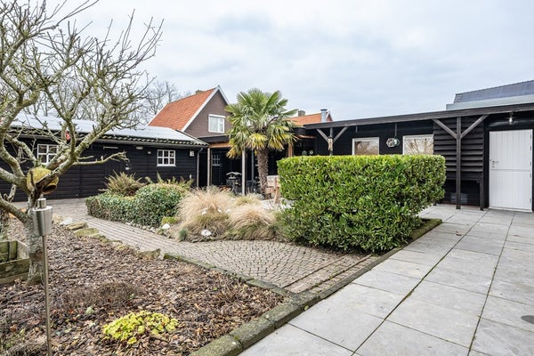 Oprit voor meerdere auto`s, borders en een zonnescherm handbediend.