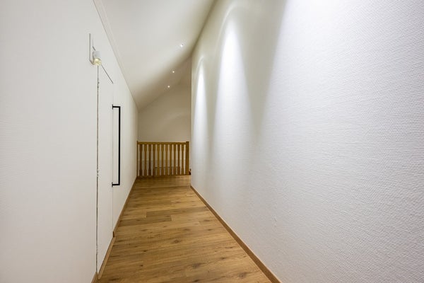 Plavuizenvloer v.v. vloerverwarming, radiator, meterkast en trapopgang.