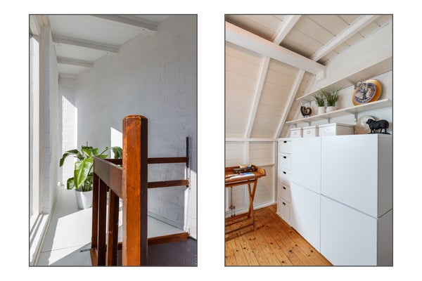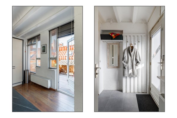 Kleine overloop met toegang tot het zonnige dakterras op het westen, waar zich ook de zonnepanelen bevinden – een fijne plek om even buiten te zijn.