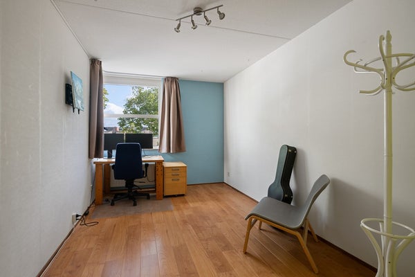 De tweede verdieping biedt opnieuw veel ruimte. Op de overloop bevindt zich de wasruimte met cv-opstelling (2014). Vanuit hier bereikt u een royale slaapkamer met toegang tot het grote dakterras, dat rondom de woning loopt. Een unieke buitenruimte met volop privacy en zon. De buitenzijde is rondom voorzien van onderhoudsvrije keralit rabatdelen, wat zorgt voor een moderne en verzorgde uitstraling