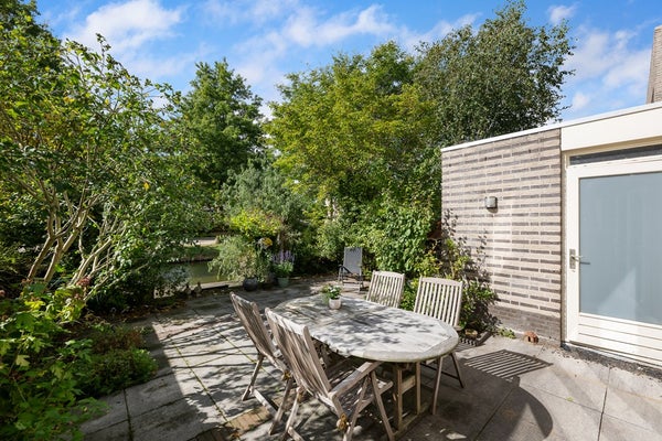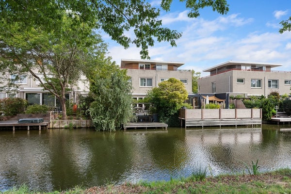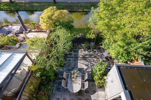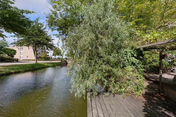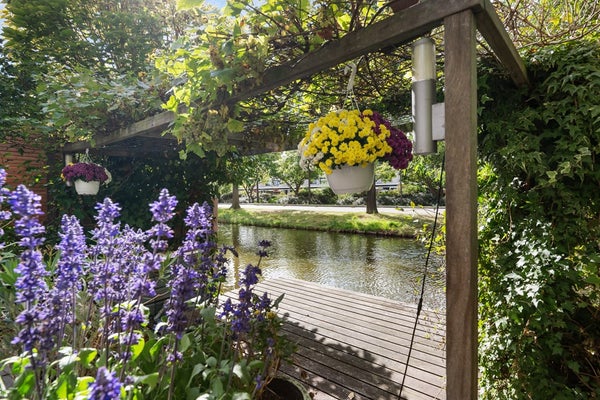In de fraai aangelegde achtertuin op het zuidwesten geniet u de hele middag en avond van de zon. Het terras aan het water nodigt uit tot lange zomeravonden, terwijl het elektrische zonnescherm zorgt voor comfort op warme dagen. Vanuit de tuin is er toegang tot de garage.