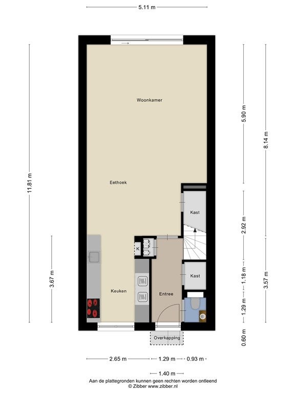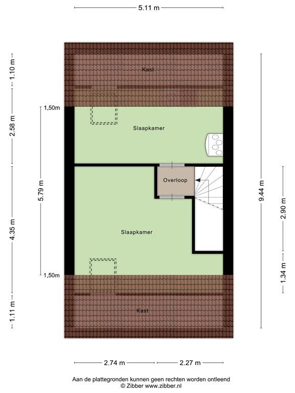 - Aanwezig (46 m², gelegen op het zuidoosten)