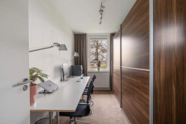 De 2e etage is ingericht als hobbykamer / werkkamer. Voorzien van een schuifwandkast.