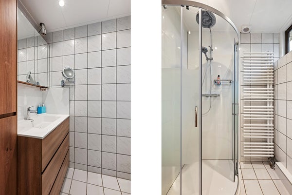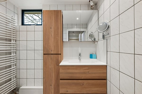 Op de 1e etage zijn 3 prima slaapkamers, een apart 2e toilet en een badkamer met douche en wastafelmeubel.