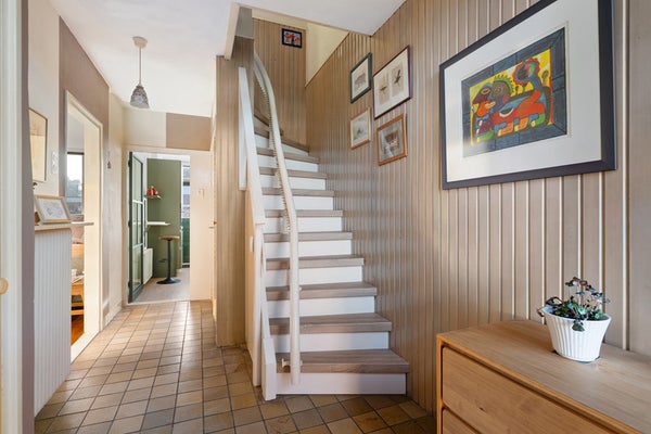 De trap naar de eerste verdieping is mooi bekleed met pvc overzettreden (Upstairs). Leuk detail is de geïntegreerde trapverlichting.