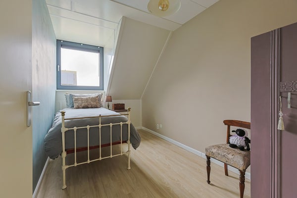 Een royale zolderverdieping met voorzolder voorzien van wasmachineaansluiting, een extra slaapkamer en voldoende bergruimte. Een fijne plek als extra slaapkamer, werkruimte of hobbykamer.