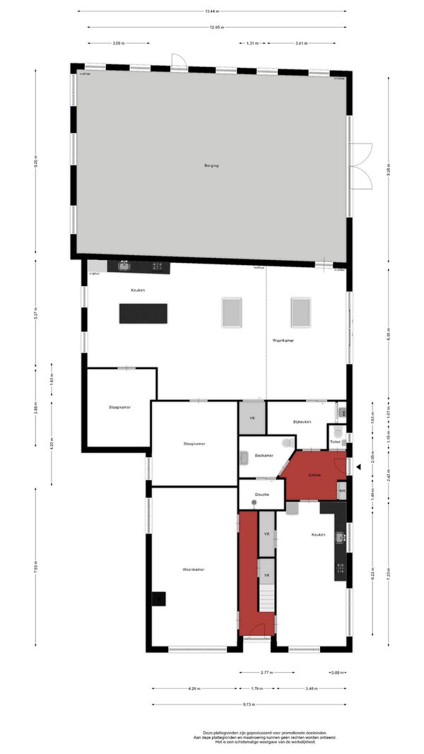 - Aanwezig (3.454 m², gelegen op het oosten)