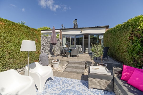 Tussenwoning met tuin en terras op het zuiden. Gelegen op een rustige locatie in bungalowpark St. Pierre en op slechts enkele minuten lopen van het strand en de zee. Er is parkeergelegenheid op eigen terrein.