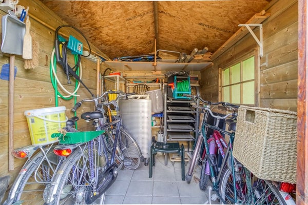 De berging is 0,85 bij 3,30 meter groot en is voorzien van elektra en verlichting. Het tuinhuis staat achter in de tuin en is 2,95 bij 1,90 meter groot en is ook voorzien van elektra en verlichting. Beide ruimtes zijn voldoende groot voor bijvoorbeeld het stallen van meerdere (elektrische)fietsen, strandspullen of voor het opbergen van tuinmeubelen.