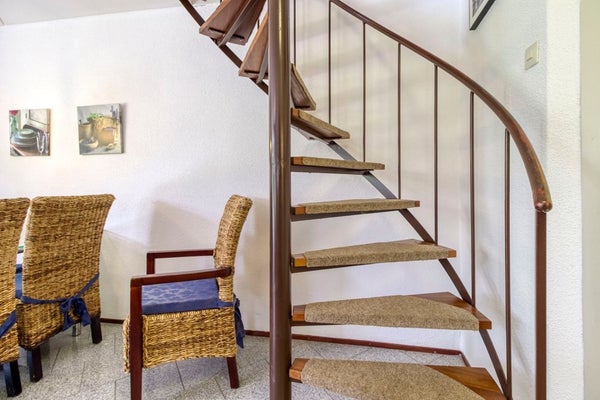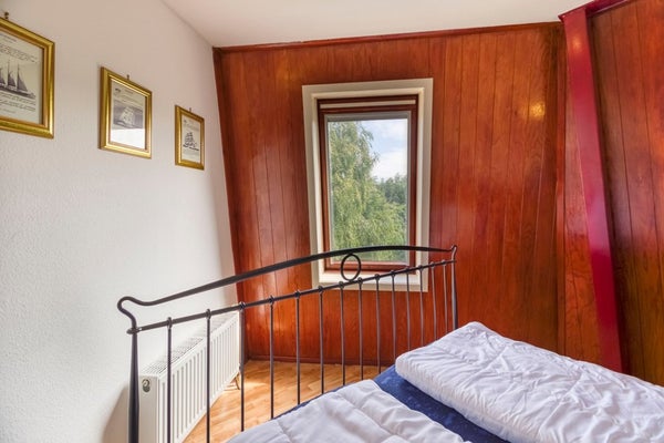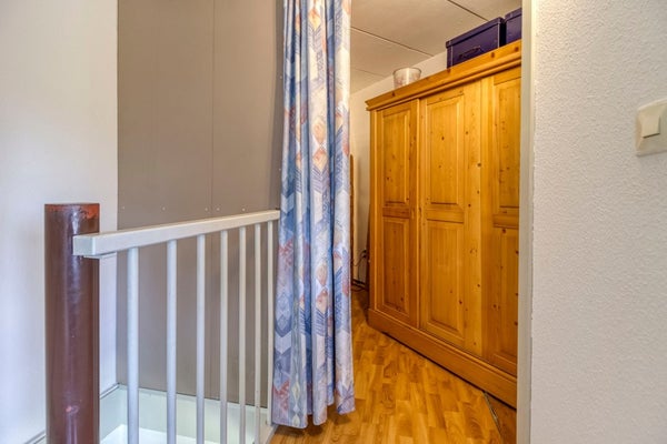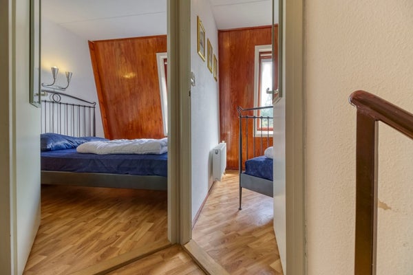 Via de wenteltrap in de woonkamer is de eerste verdieping te bereiken. Hier bevindt zich een ruime overloop met extra slaapgelegenheid en 2 aparte slaapkamers.