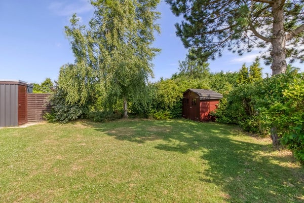 De berging is 1,00 bij 3,50 meter groot en is voorzien van elektra en verlichting. Het tuinhuis staat achter in de tuin en is 1,60 bij 1,95 meter groot.