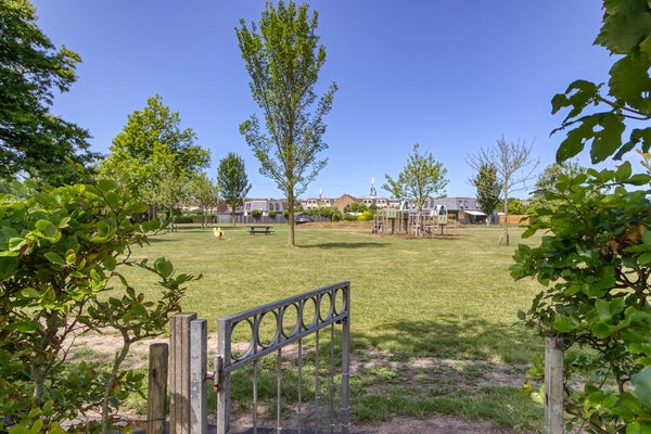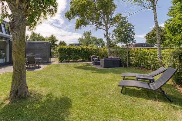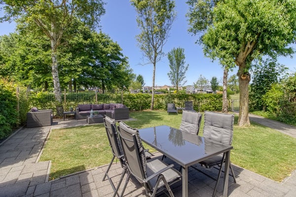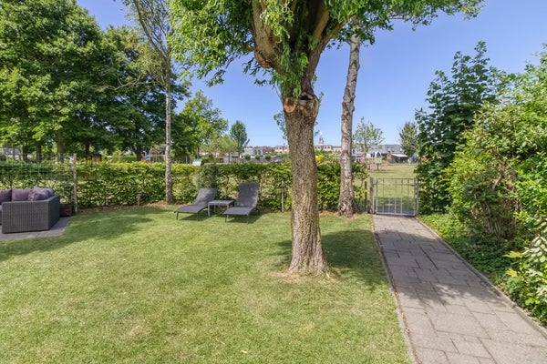 De tuin is gelegen op het noordwesten waarbij altijd een plekje te vinden is om heerlijk te genieten van de zon. ’s Ochtends ontbijten in de zon en ’s avond dineren of borrelen in de zon! Als het te warm is kan de schaduw opgezocht worden onder één van de aanwezige bomen. Er zijn twee terrassen en de tuin grenst aan een open grasveld met veel groen. Kortom een tuin om heerlijk te genieten. Bij de woning hoort een eigen parkeerplaats die net om de hoek is gelegen.