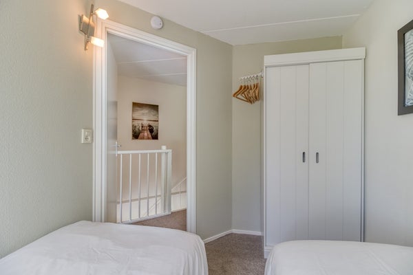 Via de wenteltrap in de woonkamer is de eerste verdieping te bereiken. Hier bevindt zich een ruime overloop met extra slaapgelegenheid en 2 aparte slaapkamers.