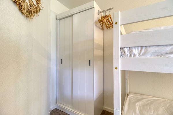 De berging is 1,00 bij 3,50 meter groot en is voorzien van elektra en verlichting. Ideaal voor bijvoorbeeld het stallen van (elektrische)fietsen, of voor het opbergen van tuinmeubelen en strandspullen.