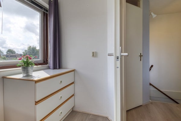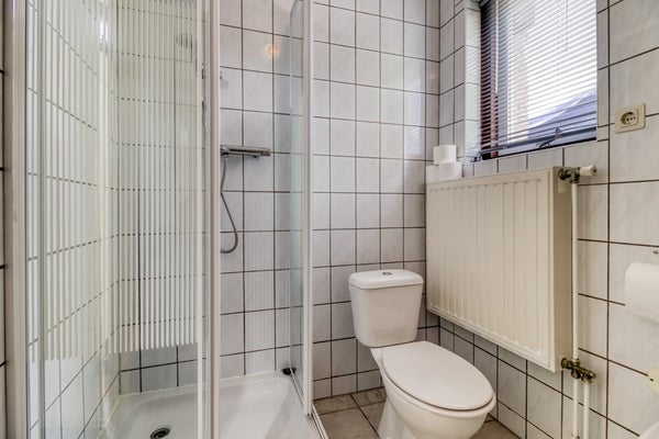 Via de trap in de woonkamer is de eerste verdieping te bereiken. Hier bevindt zich een overloop met toegang tot 2 slaapkamers en de 2e badkamer. Deze badkamer is voorzien van douche, wastafel, toilet en wasmachine.