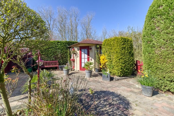 De berging is 1,00 bij 3,50 meter groot en is voorzien van elektra en verlichting. Ideaal voor bijvoorbeeld het stallen van (elektrische)fietsen, strandspullen of tuingereedschap. Als extra opbergmogelijkheid is er ook nog een tuinhuis.
