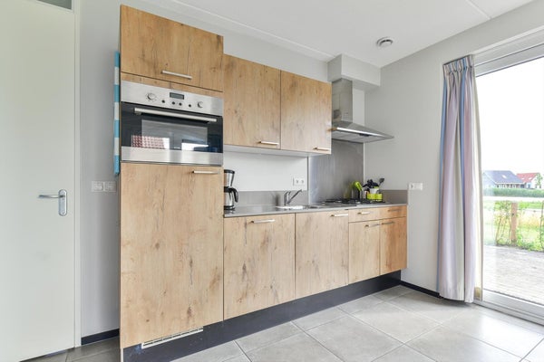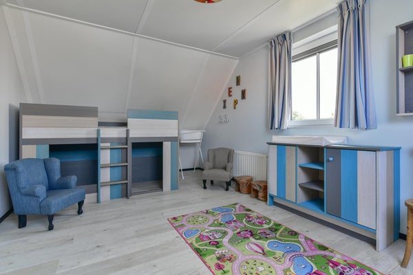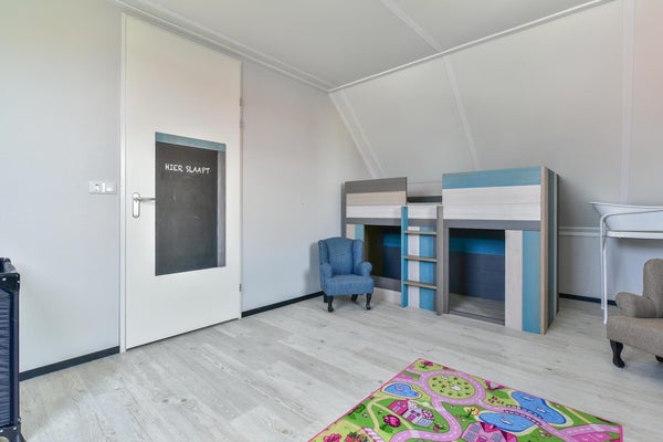 Via de entree bereik je de sfeervolle woonkamer met toegang tot de tuin. De goed afgewerkte open keuken is o.a. voorzien van een gasplaat, koelkast met vriesvak en combimagnetron. De slaapkamer op de begane grond heeft een tweepersoons boxspring, kast en een flatscreen tv. De aangesloten badkamer heeft een douche (incl. glazen douchewand) en wastafel. Het toilet is separaat. Op de eerste verdieping zijn nog twee slaapkamers, een met een tweepersoons boxspring en de kinderslaapkamer een verhoogd speelbed en een los bed. Ook vind je hier een tweede badkamer, met een ligbad en douche in één, een wastafel en toilet.