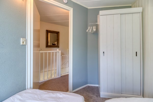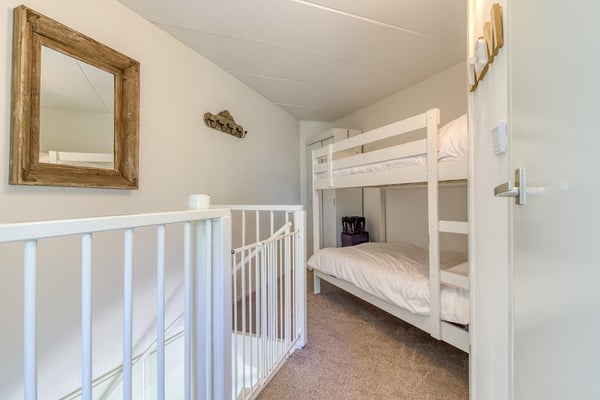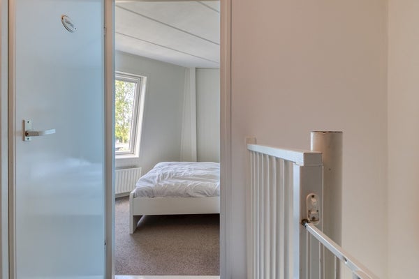 Via de wenteltrap in de woonkamer is de eerste verdieping te bereiken. Hier bevindt zich een ruime overloop met extra slaapgelegenheid en 2 aparte slaapkamers.