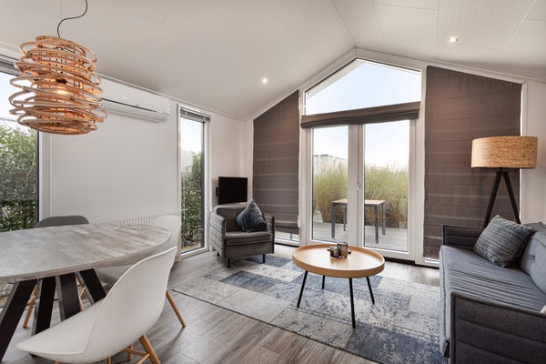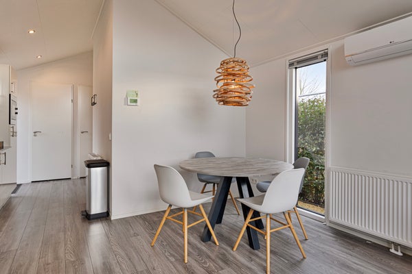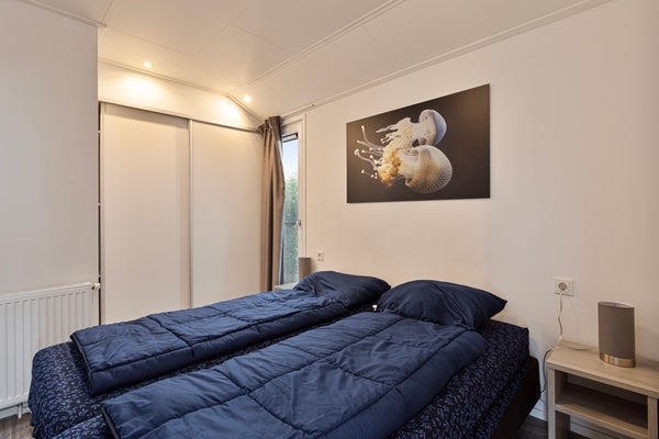 Deze vrijstaande recreatiebungalow in Bad Hulckesteijn, gelegen op EuroParcs, biedt een ideale uitvalsbasis voor natuurliefhebbers en watersporters. Met een oppervlakte van 43 m², omringd door een tuin van 201 m², inclusief een zonneterras en een eigen parkeerplaats, is het perfect voor maximaal vier personen. De bungalow, gebouwd in 2018, is volledig geïsoleerd en heeft centrale verwarming op gas. Binnen vind je een hal, een lichte living met terrasdeuren, en een open keuken met apparatuur zoals een kookplaat, oven en vaatwasser. Er zijn twee slaapkamers en een badkamer met inloopdouche. Het park is bereikbaar via rustige wegen en biedt voorzieningen zoals een overdekt zwembad, wellness en restaurant. Van wandelen en fietsen in de Veluwe tot het varen op het Veluwemeer, ontspanning en avontuur zijn hier te vinden.