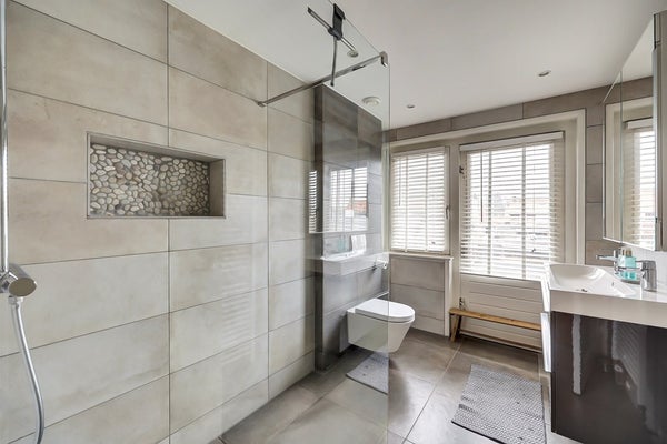 Op de verdiepingen zijn vijf volwaardige slaapkamers aanwezig. Hierdoor is er volop ruimte voor een groot gezin, een thuiswerkplek of hobbykamer. De badkamer is modern en praktisch ingericht met een inloopdouche, wastafelmeubel en toilet.