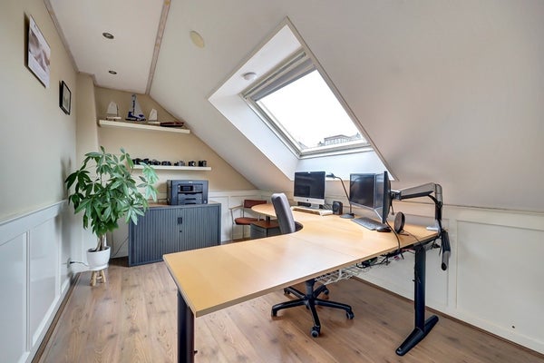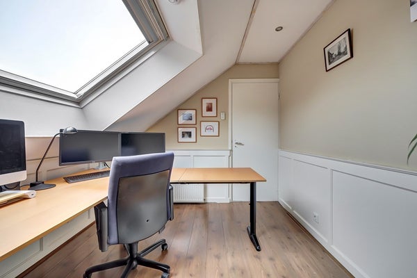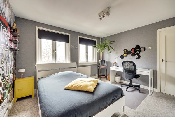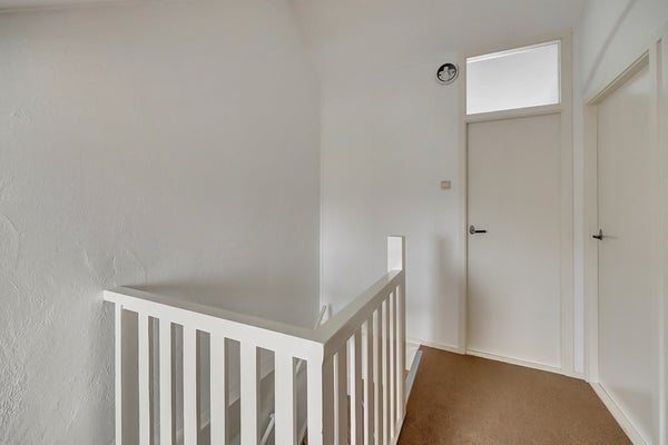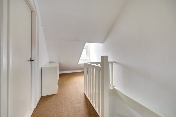 De tweede verdieping biedt verrassend veel ruimte. Op de overloop is plek voor extra bergruimte of een speelhoek. Hier bevinden zich nog twee ruime slaapkamers. De slaapkamer aan de voorzijde heeft een dakraam voor veel daglicht. De slaapkamer aan de achterzijde beschikt over een royale dakkapel, wat zorgt voor extra ruimte en licht.