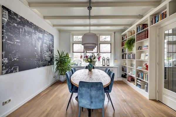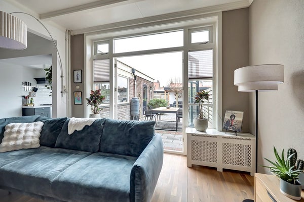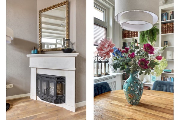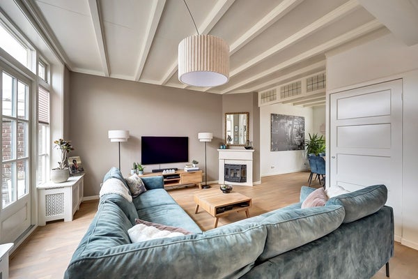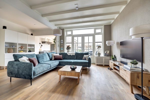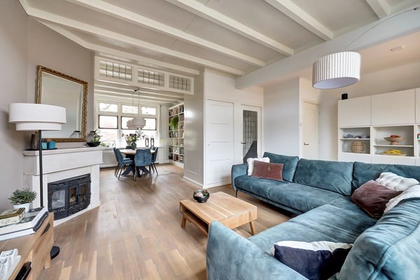 Bij binnenkomst valt direct de charmante uitstraling van de woning op. Hoge plafonds, grote raampartijen en klassieke details zorgen voor een prettige sfeer en veel lichtinval. De woonkamer is ruim en uitnodigend, met een warme parketvloer, een sfeervolle schouw en openslaande deuren naar de tuin.