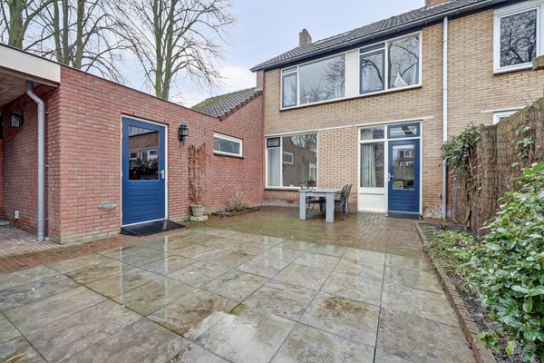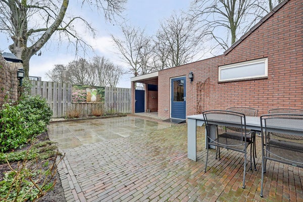 De woning beschikt over een ruime achtertuin die grotendeels is bestraat en daardoor onderhoudsvriendelijk is ingericht. Er is volop ruimte om meerdere gezellige zitplekken te creëren, zodat u op elk moment van de dag van de buitenruimte kunt genieten. Achter in de tuin bevindt zich een stenen berging met aangrenzende overkapping, ideaal voor het stallen van fietsen, extra opslag of het creëren van een beschutte zithoek. Dankzij de prettige indeling en de goede mate van privacy is dit een heerlijke plek om te ontspannen.