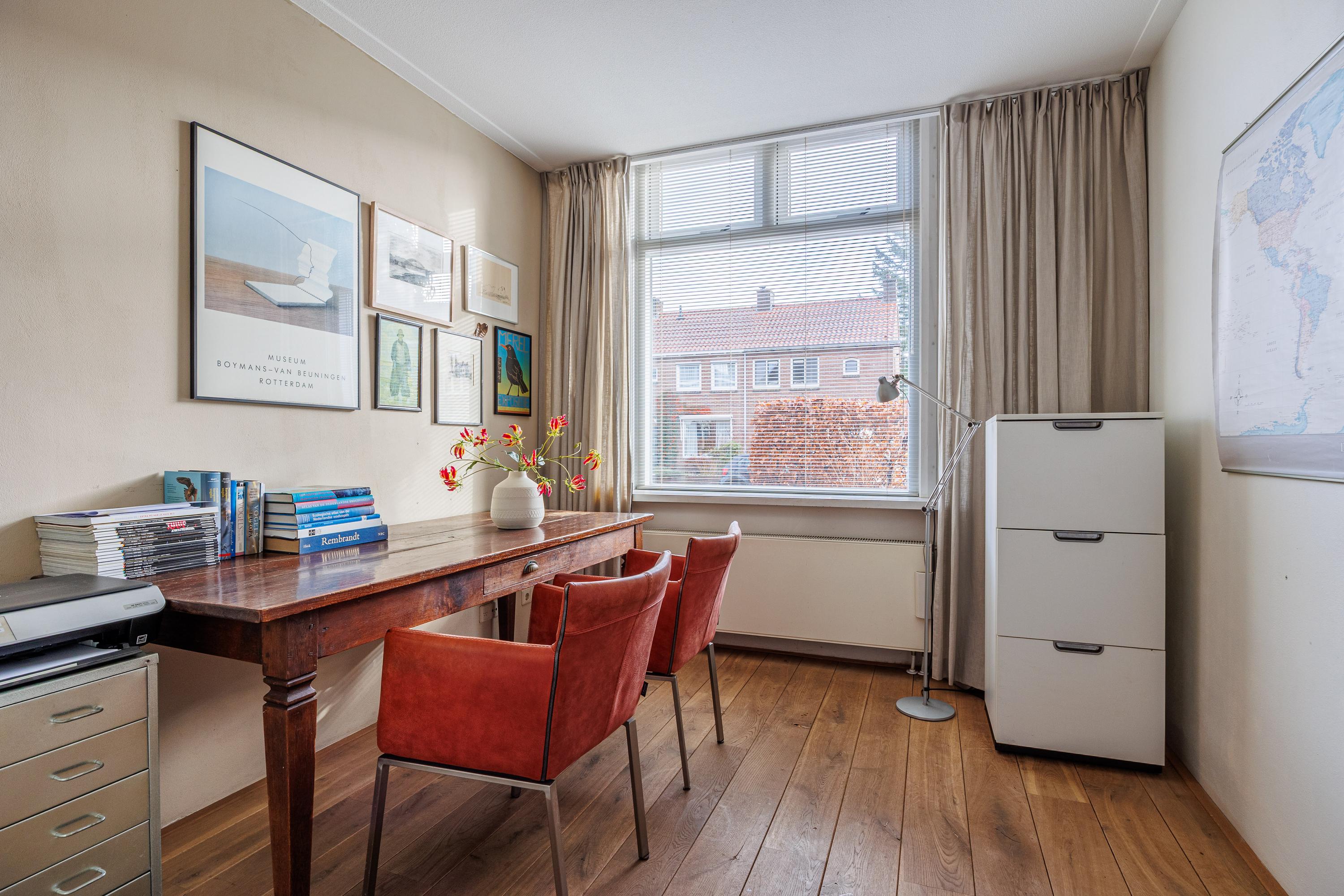 Dit gezellige eengezinswoning, gelegen aan een rustige weg in een woonwijk, is nu beschikbaar voor een vraagprijs van € 725.000,- kosten koper. De 2-onder-1-kapwoning uit 1924 heeft een woonoppervlakte van 120 m² en een perceeloppervlakte van 471 m², met 5 kamers, 3 slaapkamers en 1 badkamer uitgerust met een inloopdouche, wastafel en toilet. De woning heeft 3 woonlagen en een balkon, evenals een dakterras met glasvezel en zonnepanelen. De achtertuin, fraai ingericht, ligt op het westen en is de hoofdtuin; er zijn ook een voortuin en zijtuin. Voor voorzieningen zoals verwarming en warmwater zijn er een C.V.-ketel, houtkachel en elektrische boiler. Parkeren kan op eigen terrein of openbaar. De woning is goed onderhouden en beschikbaar in overleg.