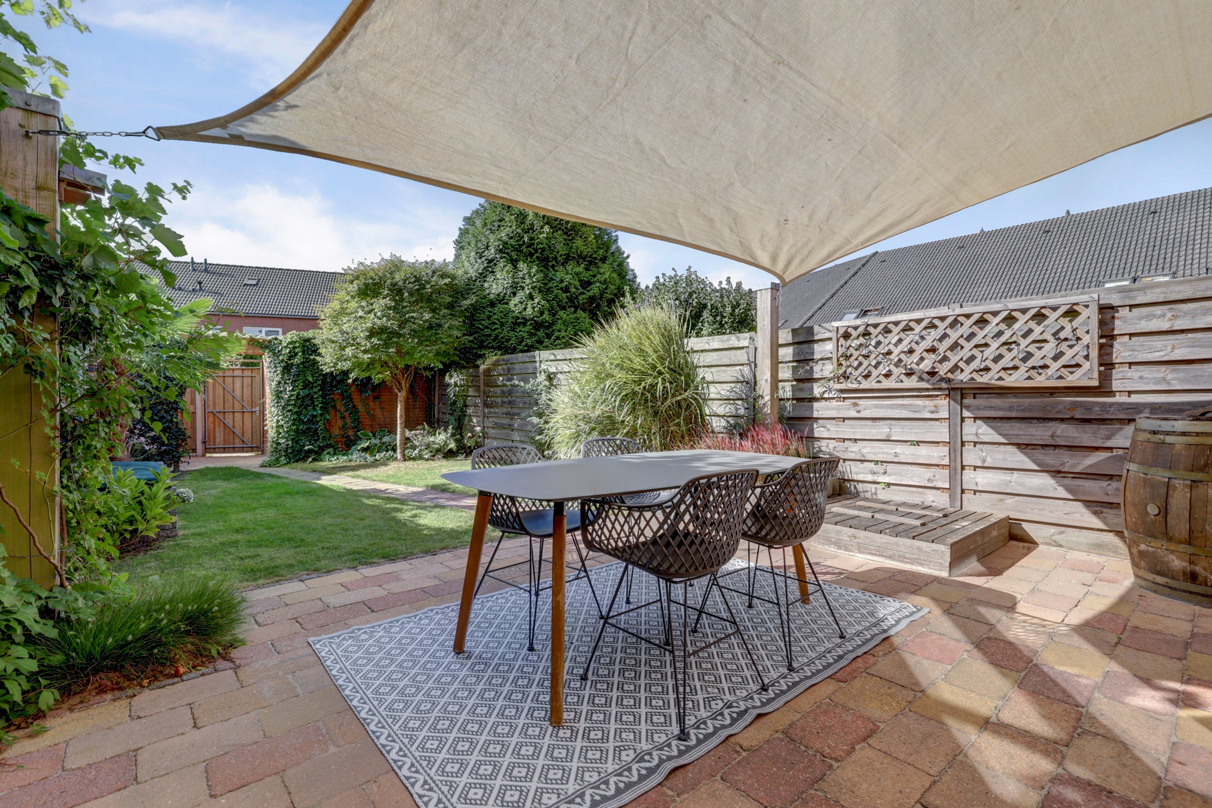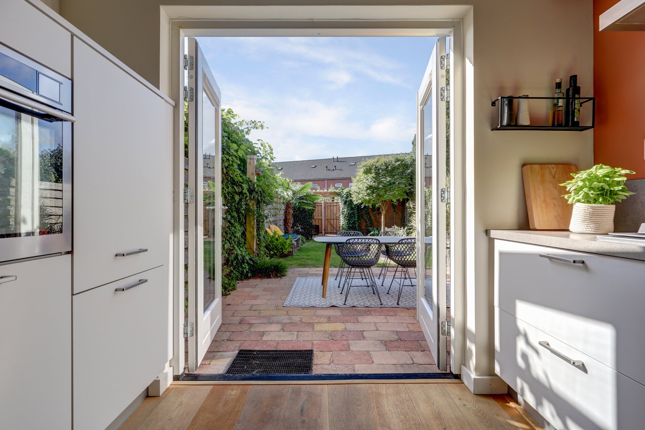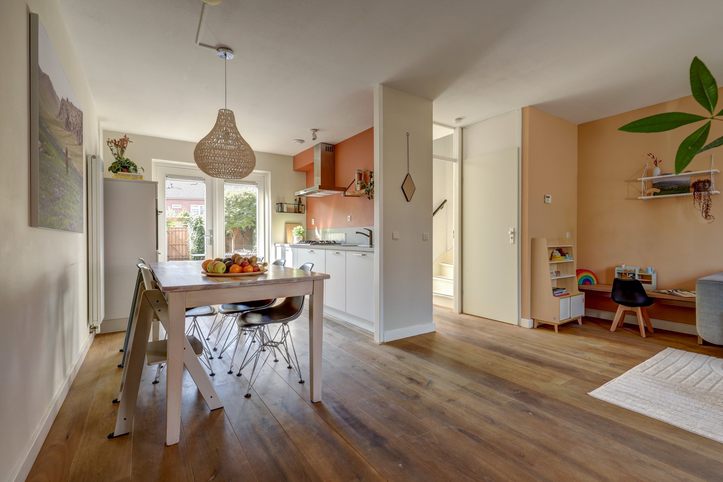 De begane grond heeft een royale woonkamer, een vernieuwde open keuken uit 2017 met moderne apparatuur, en openslaande deuren naar de tuin. De eerste verdieping biedt drie slaapkamers en een functionele badkamer. De tweede verdieping, bereikbaar via een vaste trap, bevat een veelzijdige ruimte en extra opbergruimte.