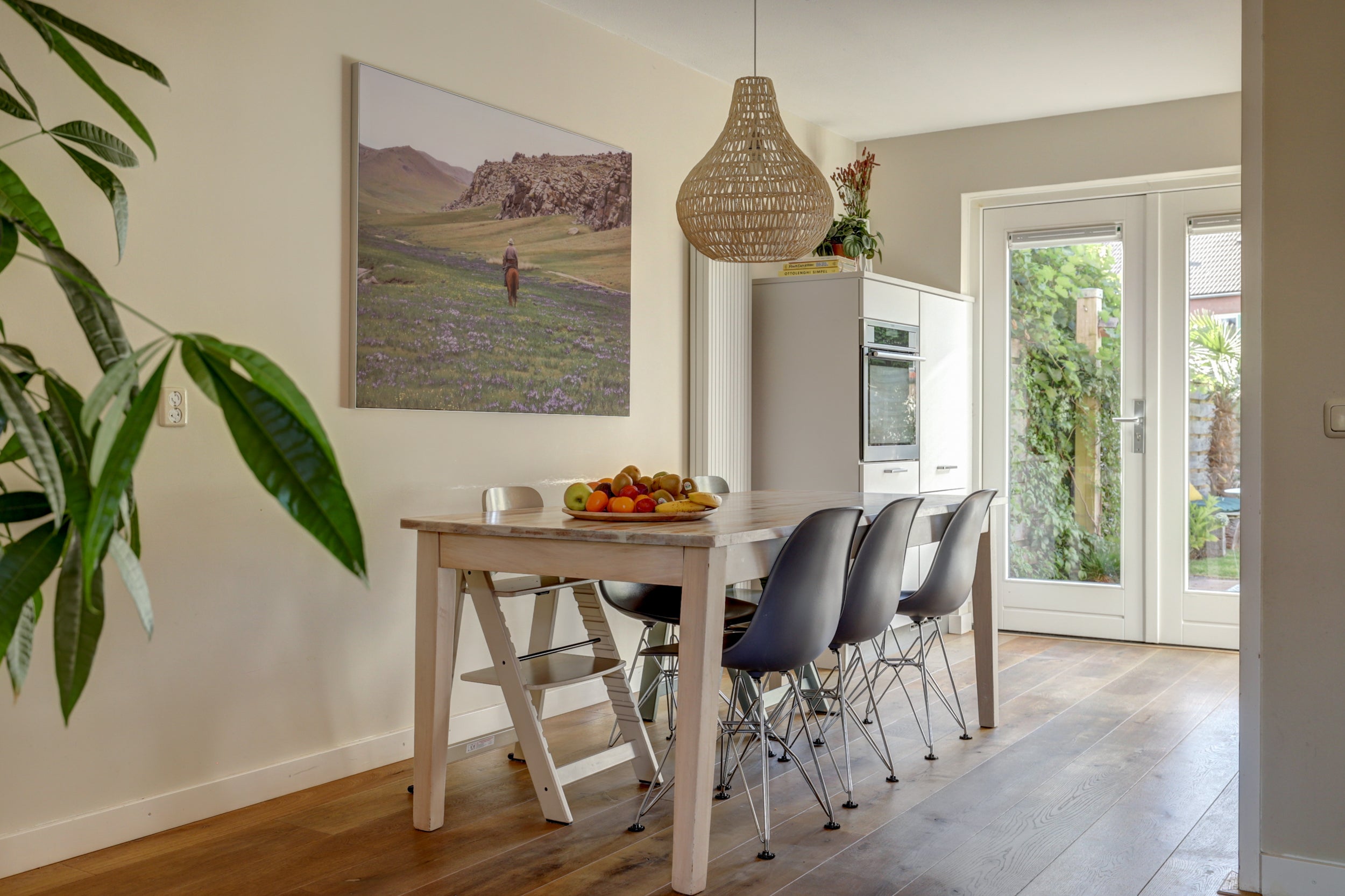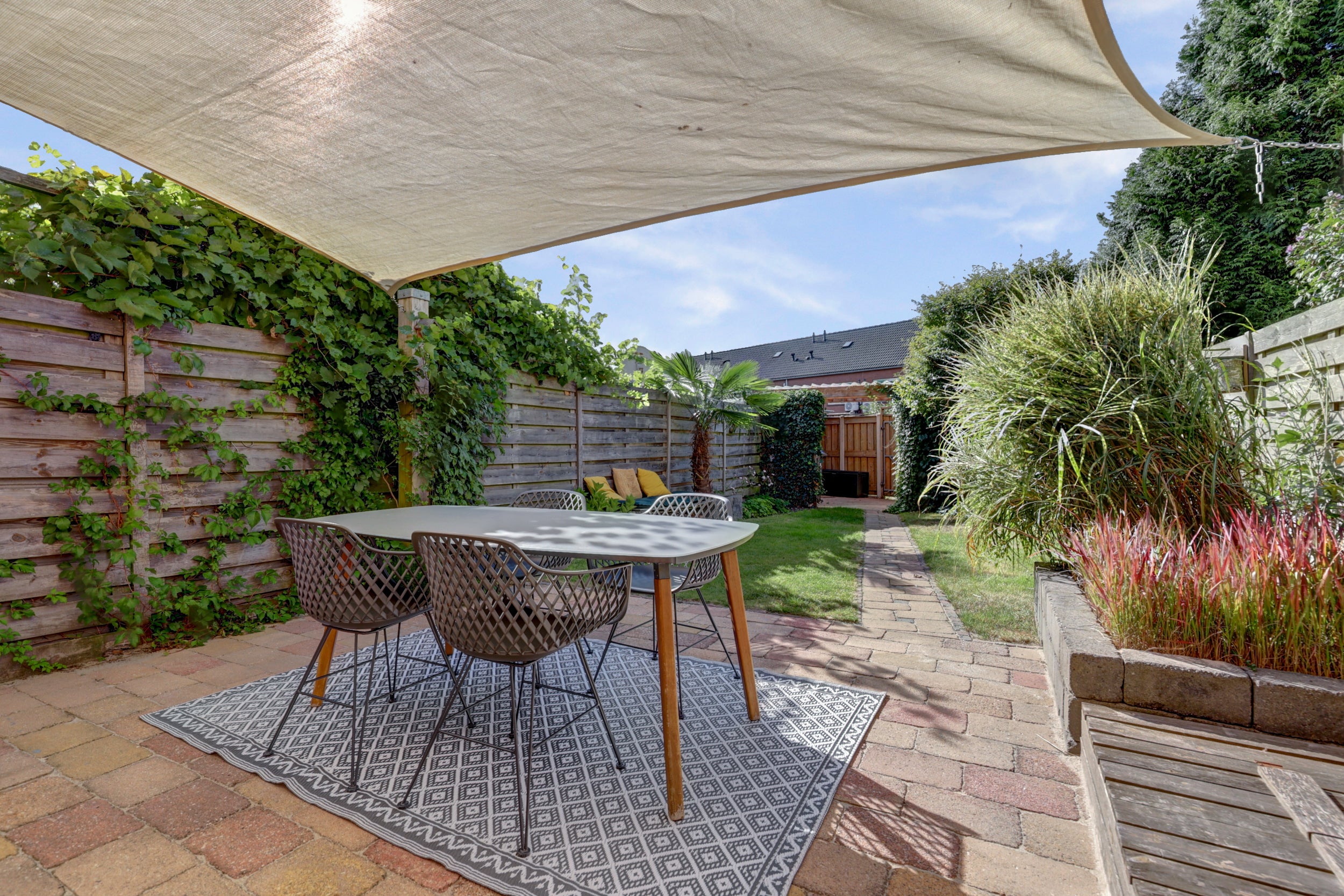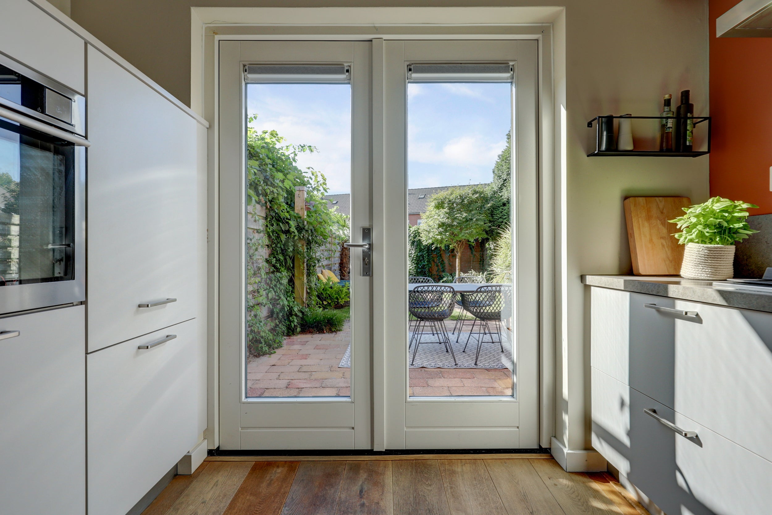 De begane grond heeft een royale woonkamer, een vernieuwde open keuken uit 2017 met moderne apparatuur, en openslaande deuren naar de tuin. De eerste verdieping biedt drie slaapkamers en een functionele badkamer. De tweede verdieping, bereikbaar via een vaste trap, bevat een veelzijdige ruimte en extra opbergruimte.