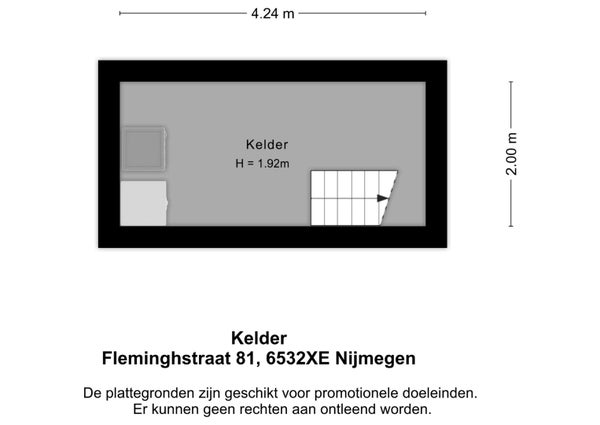 Kelder: berg- c.q. provisieruimte met wasmachineaansluiting.